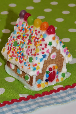 This is a mini "gingerbread" house my little one and I made together, I actually had the idea to cut the pieces out of Petit Beurres (French butter cookies), without any pattern this was quite tricky.